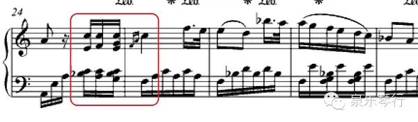 《致爱丽丝》整曲是回旋曲式,有性格鲜明的三个段落。但是,段落和段落的衔接处,却要非常自然流畅地过渡,基本保持一贯的脉搏。比如这个过渡处,有四个和弦,音不太好找,,甚至停顿了下来。这样的衔接就是不好的。和弦变化多,可以稍有渐慢,但前面后面,尤其是后面,一定要自然地过渡过去,千万不能停顿。