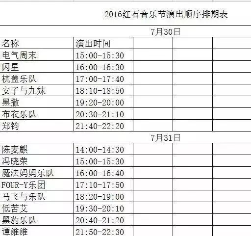 演出顺序以及时间