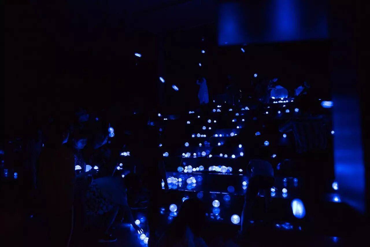 当最后一幕,几百个星空球像蓝色的瀑布一般倾泻下来时,当“星星”们被挥舞的手臂从夜空中划过,大珠小珠落玉盘时,当每一个观众手里的都捧着一颗星,点亮着自己的那一块小小的圆圈时,你有没有听见一个声音呼之欲出——