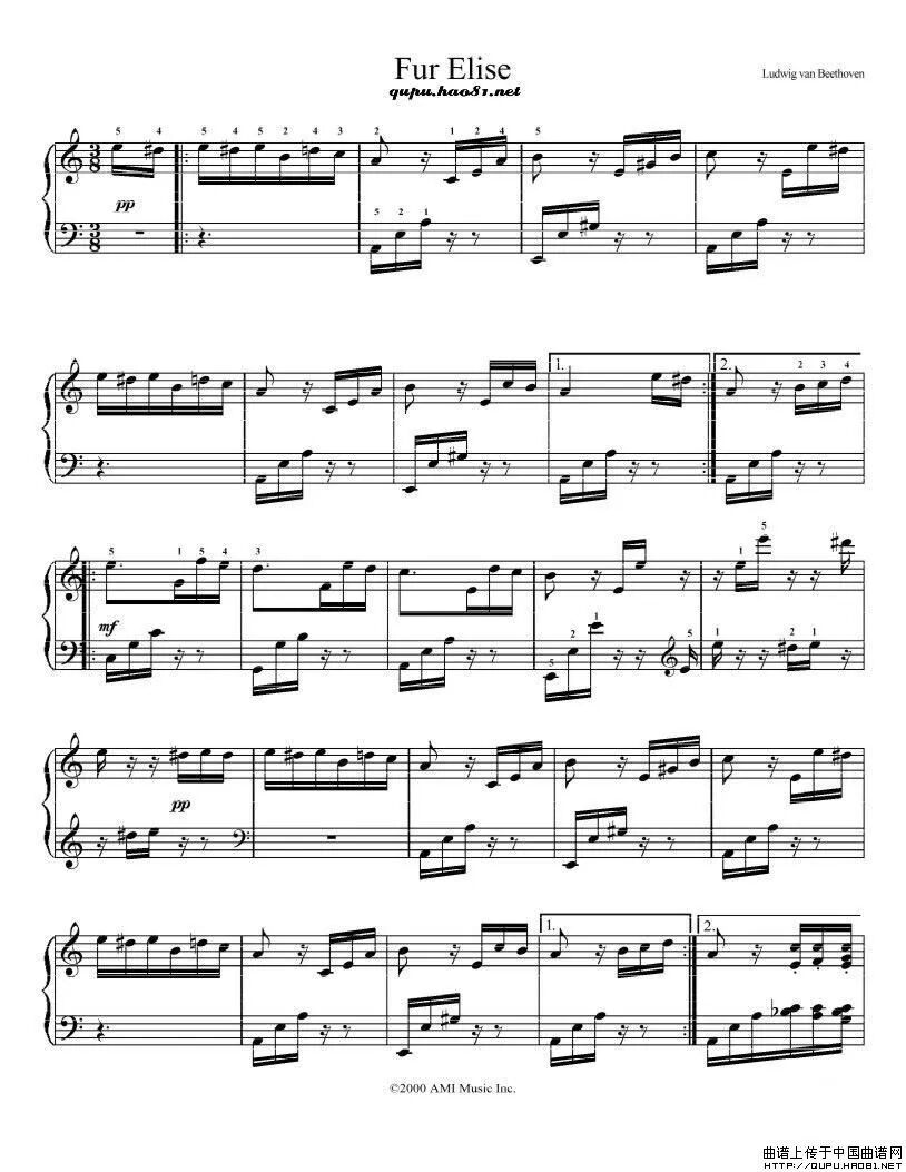 《致爱丽丝》原名《a小调巴加泰勒》,是贝多芬在1810年创作的一首独立钢琴小品,是贝多芬献给“爱丽丝”作为纪念的作品。 该作品在1867年被后人所发现,后收录在《贝多芬作品全集》第25卷的补遗部分59号。