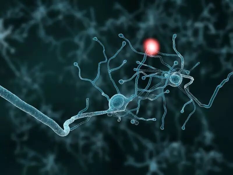 对一个脑细胞向另一个脑细胞传递了一个信号的艺术性表现(Shutterstock)