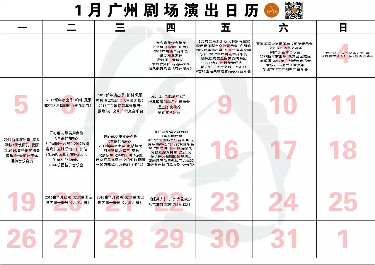 2017要来了,你又要许下什么愿望?要不,咱一步步来,先来定一个小目标,首先把一月的演出日历看一下。