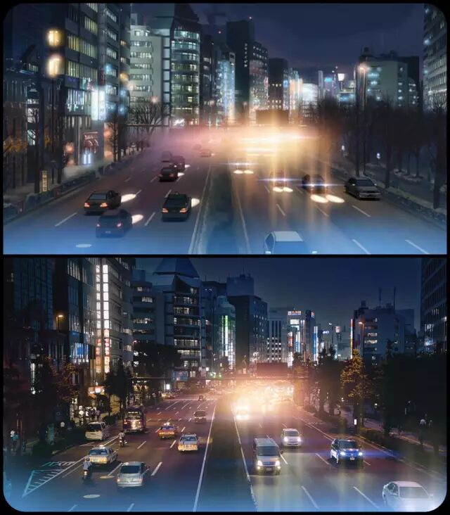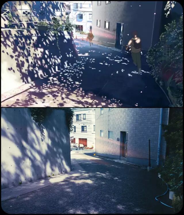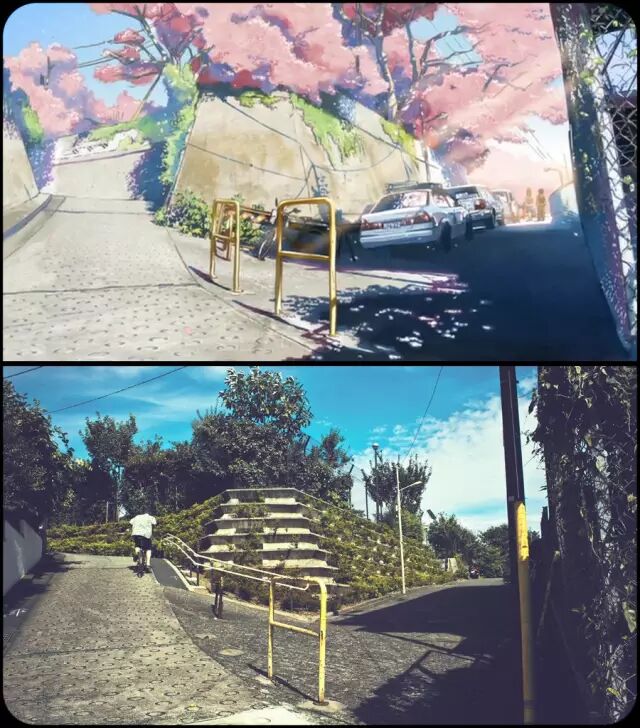 而且这位导演最喜欢将现实中的实景搬入到动画之中,有位摄影师网友还专门扒出几部作品中实景和动画的对比图,美到令人想大哭一场,不信你看: