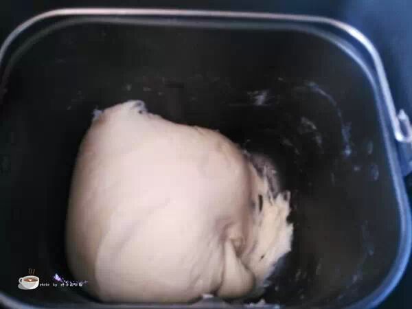 面粉、温水、酵母,再加2克盐,放入面包机桶里揉到光滑,然后发酵至原来的两倍大小