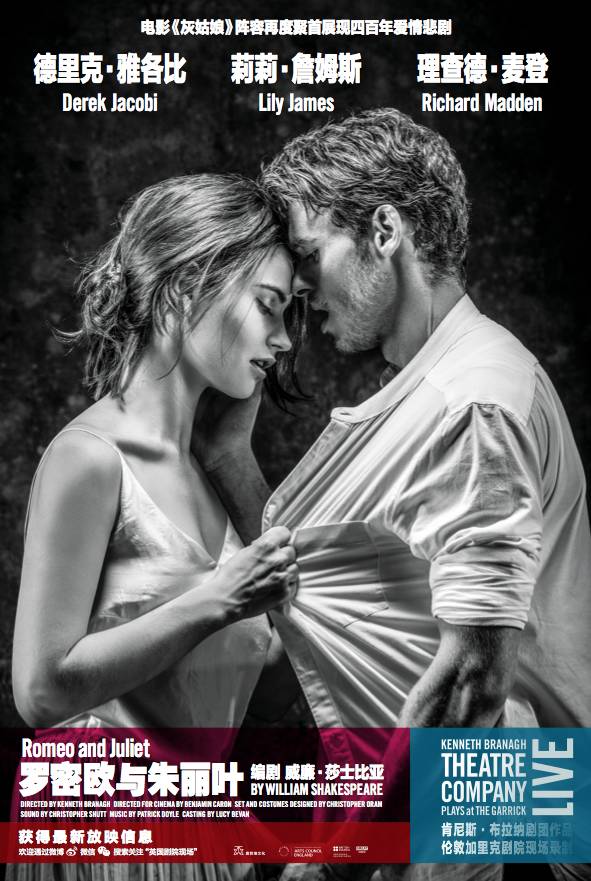 此次布拉纳剧院现场呈现的是罗伯·阿什福德和肯尼斯·布拉纳联合执导的新版本,由HBO电视剧《权力的游戏》中的“少狼主”理查德·麦登饰演罗密欧,《唐顿庄园》中的美少女莉莉·詹姆斯饰演朱丽叶。