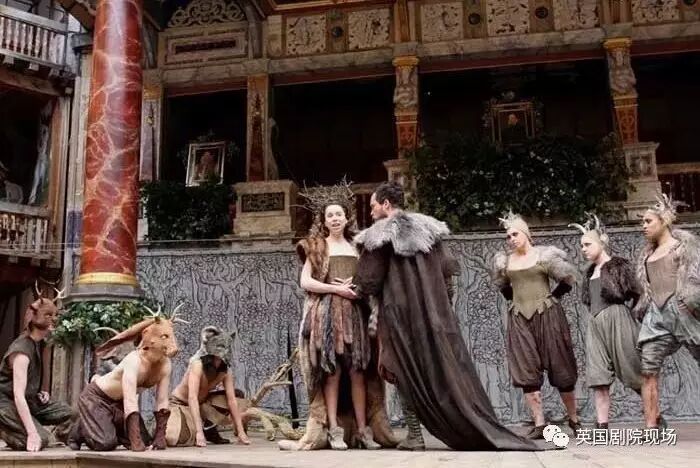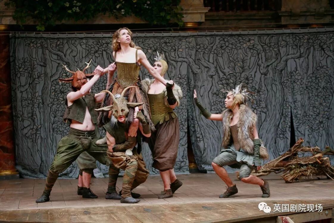 不得不提环球这版《仲夏夜之梦》的造型,充满着无华而浪漫的质感,也是相当大胆。少女们森林色系的长裙、小伙子沾满泥土痕迹的束脚裤、仙王仙后披散舒展的长发,当你为了一身说不清是皮还是毛的服饰出戏大笑的时候,没准儿就和对面的哪个观众的目光交汇、火石电闪了一下,那一刻会以为自己有幸接到了台上仙子洒下的“花汁”吧?