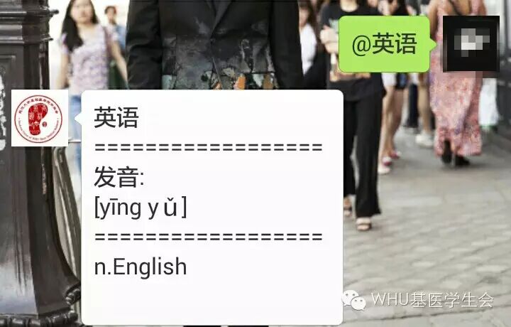 发送【四六级英语词汇量】轻松背单词;发送【四六级】查询成绩;发送【翻译+句子】【@+词语】可翻译相应句子或词组。四六级轻松过!