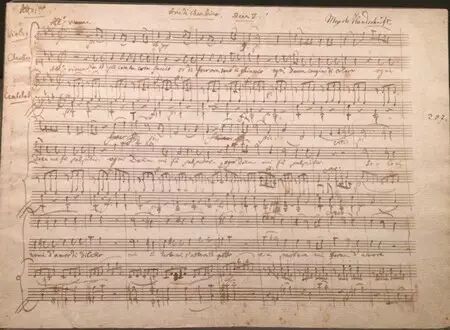 下面是《费加罗的婚礼》第一幕中著名的咏叹调"Non so più cosa son"的手稿:
