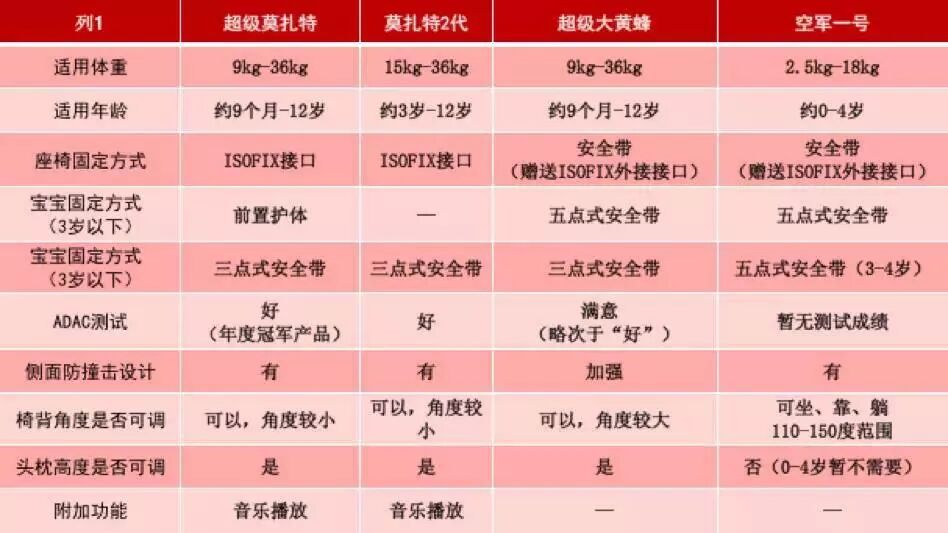 1、安全:RECARO安全座椅除了拥有欧标ECE认证及中国的CCC认证之外,还通过了堪称目前世界上最严格的安全测试——德国ADAC安全碰撞测试。在这项测试中,最近4年间RECARO拿下了2个年度冠军和1个年度Test Winner Group I。我们开团的超级莫扎特就是2013年的ADAC年度冠军产品。